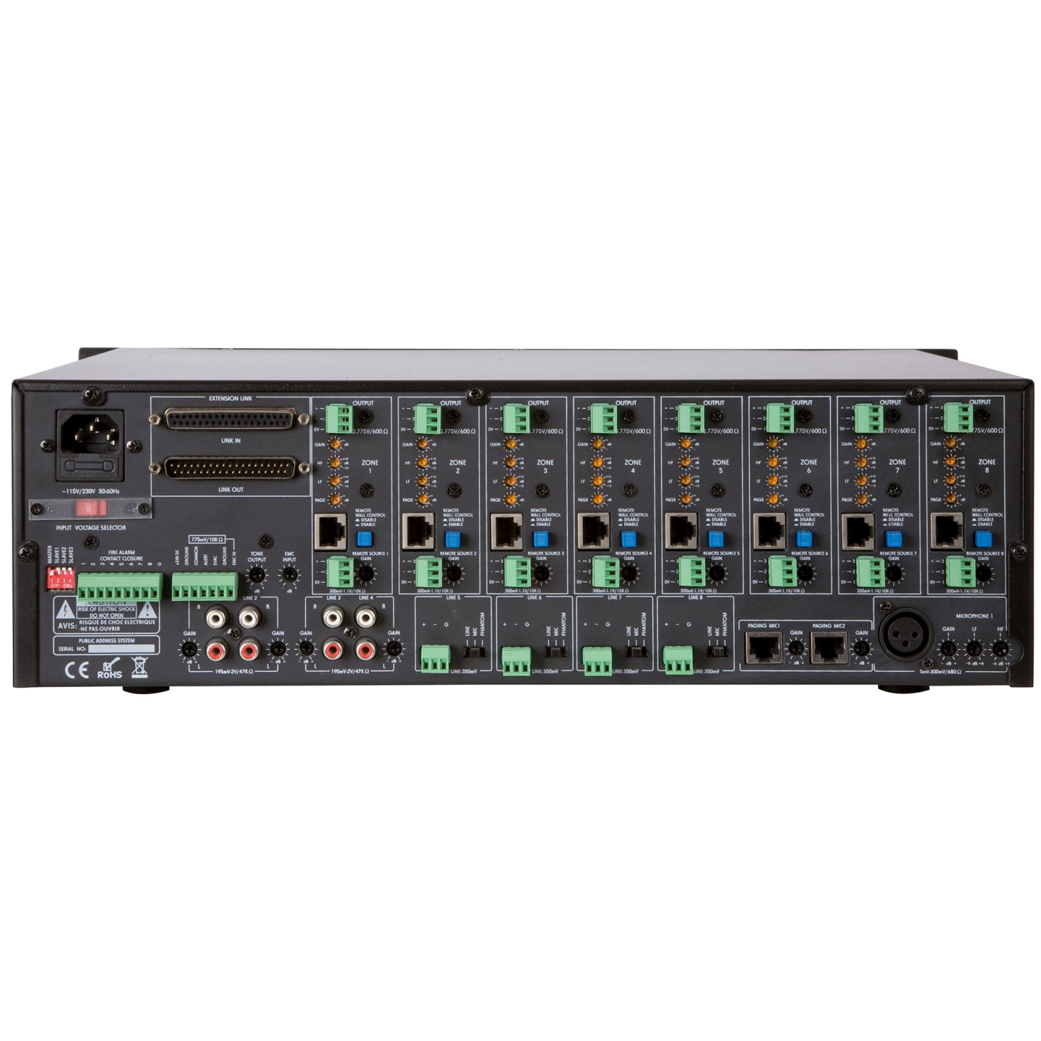 This high-performance 8-zone matrix guarantees the ultimate in flexibility. Its name says it all: you simultaneously distribute different sources to up to 8 zones. Moreover, you can also add sources locally, adjust the volume, etc.