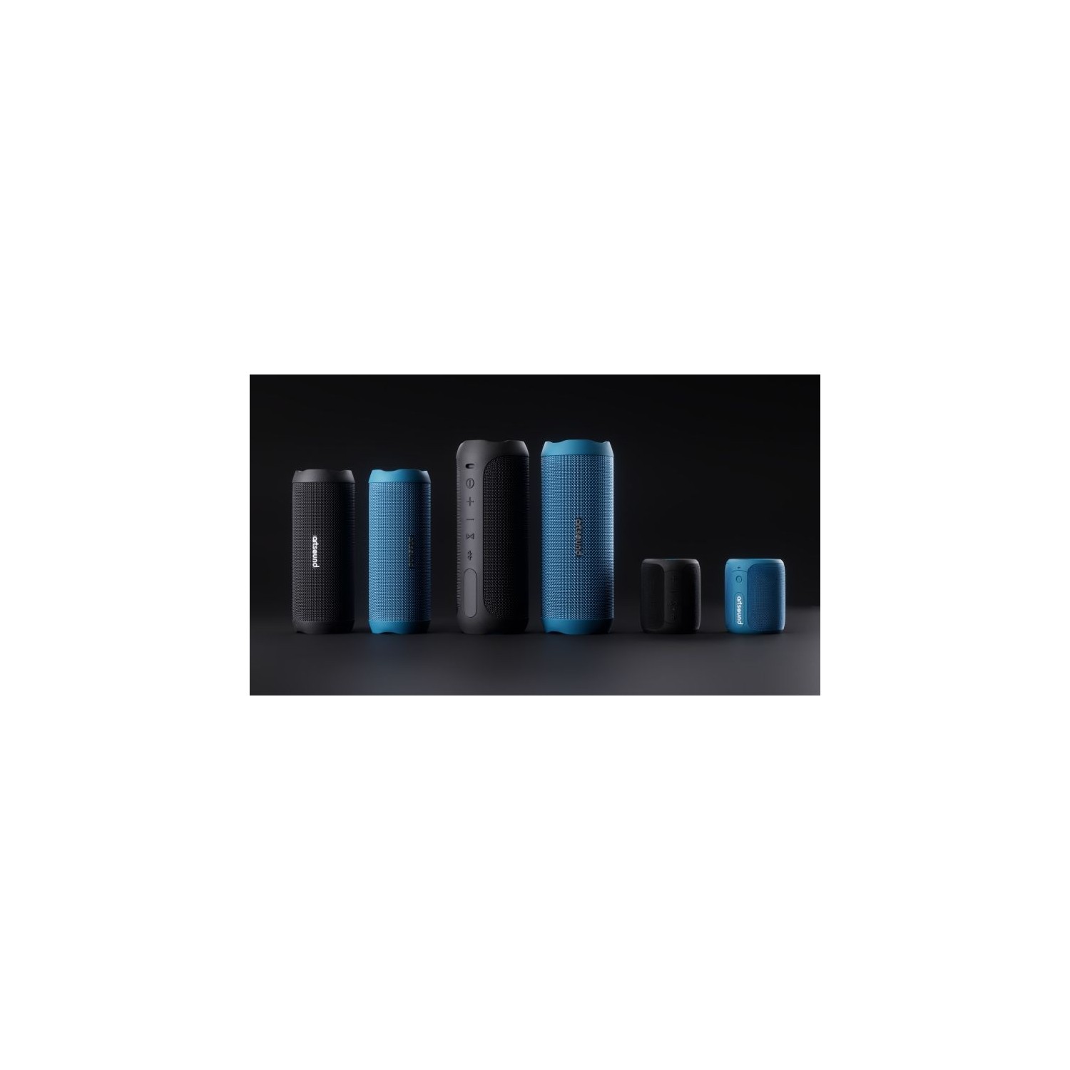 The sound of the PWR03 speaker will blow you away. Its cylindrical shape projects the sound 360°. The sound that comes out is a perfect balance of high and low tones. If you want to spread your music over a larger area or enjoy stereo sound, simply pair it wirelessly with a second PWR01, PWR02 or PWR03 speaker using TWS technology.