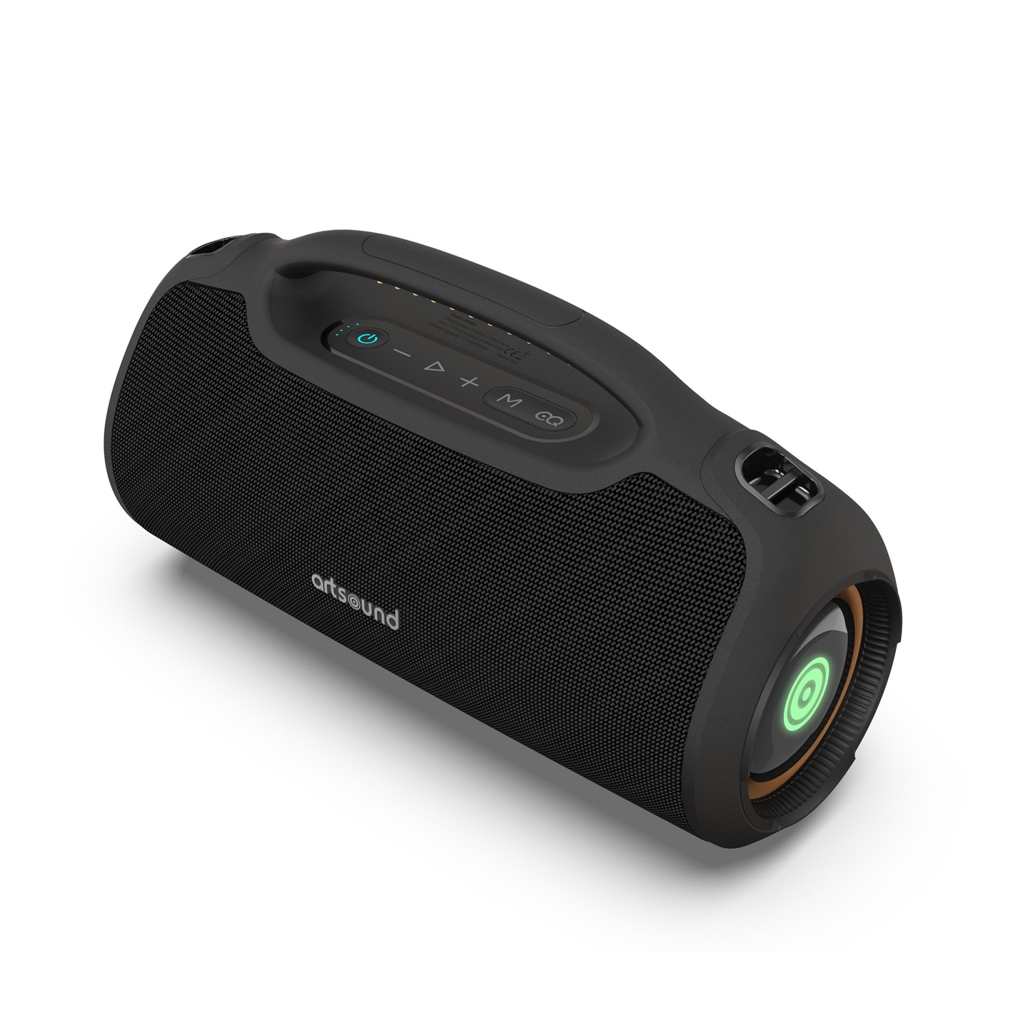 Le PWR04 est une enceinte Bluetooth portable et étanche qui vous offre un son étonnamment ample et profond. Les sons graves et aigus sont parfaitement équilibrés. Grâce à sa forme cylindrique, le son est clair et fort de tous les côtés. L’éclairage LED intégré ajoute une belle expérience visuelle. De plus, le PWR04 peut être mis à rude épreuve : les conditions météorologiques n’ont pas d’importance puisqu’il est étanche selon la norme IPX6. Et comme si cela ne suffisait pas, il vous offre également ceci : La technologie TWS pour l’appairer sans fil et une batterie pour recharger vos appareils. Tout dans cette enceinte est d’une qualité irréprochable.
