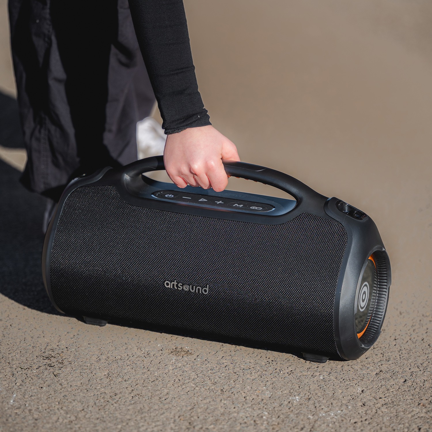 Le PWR04 n'a pas seulement un son puissant, il est aussi solide. Du matériau tendu sur les haut-parleurs au boîtier qui résiste à la poussière et à l'eau. De la poignée avec une prise en main supplémentaire à la protection en caoutchouc sur les côtés et le fond.