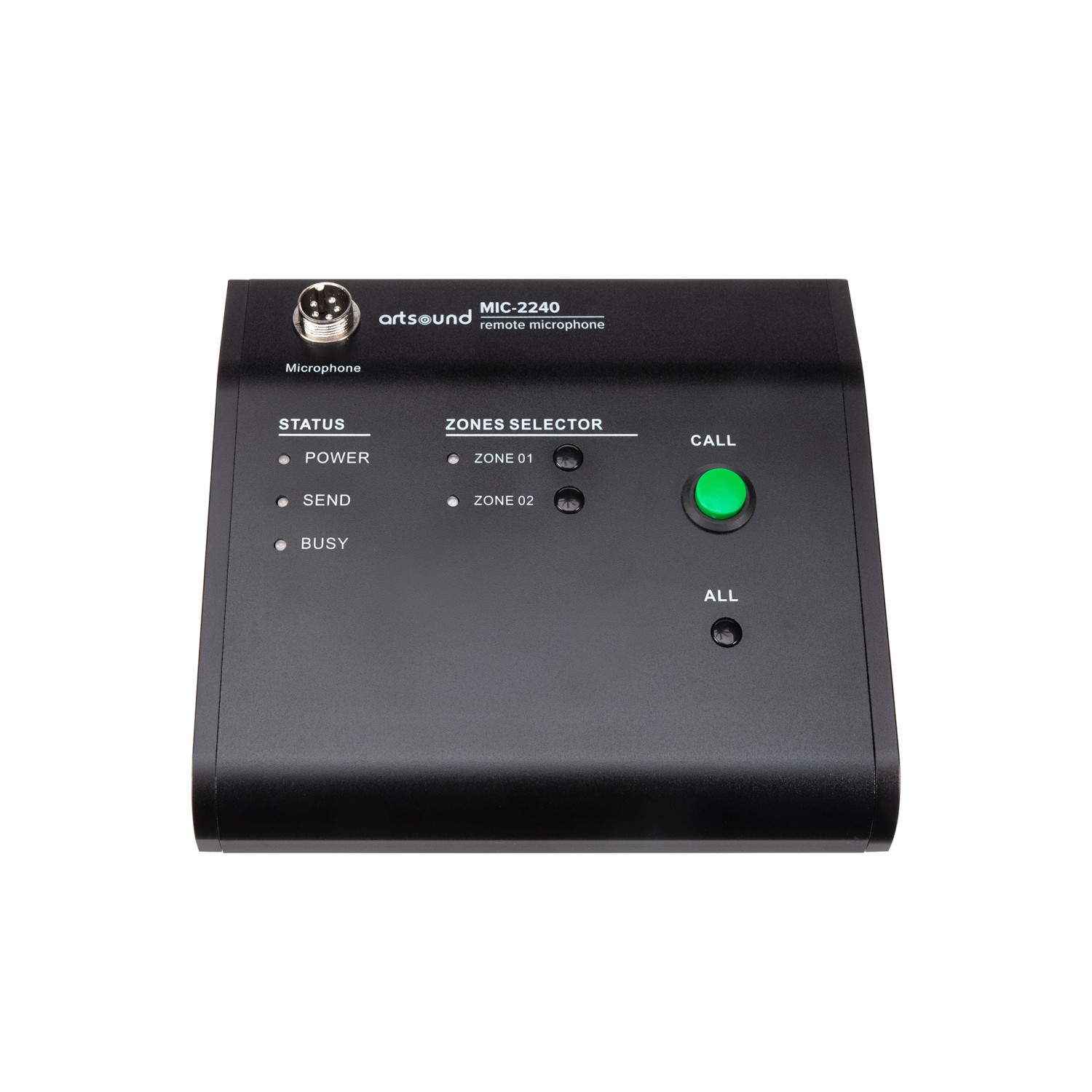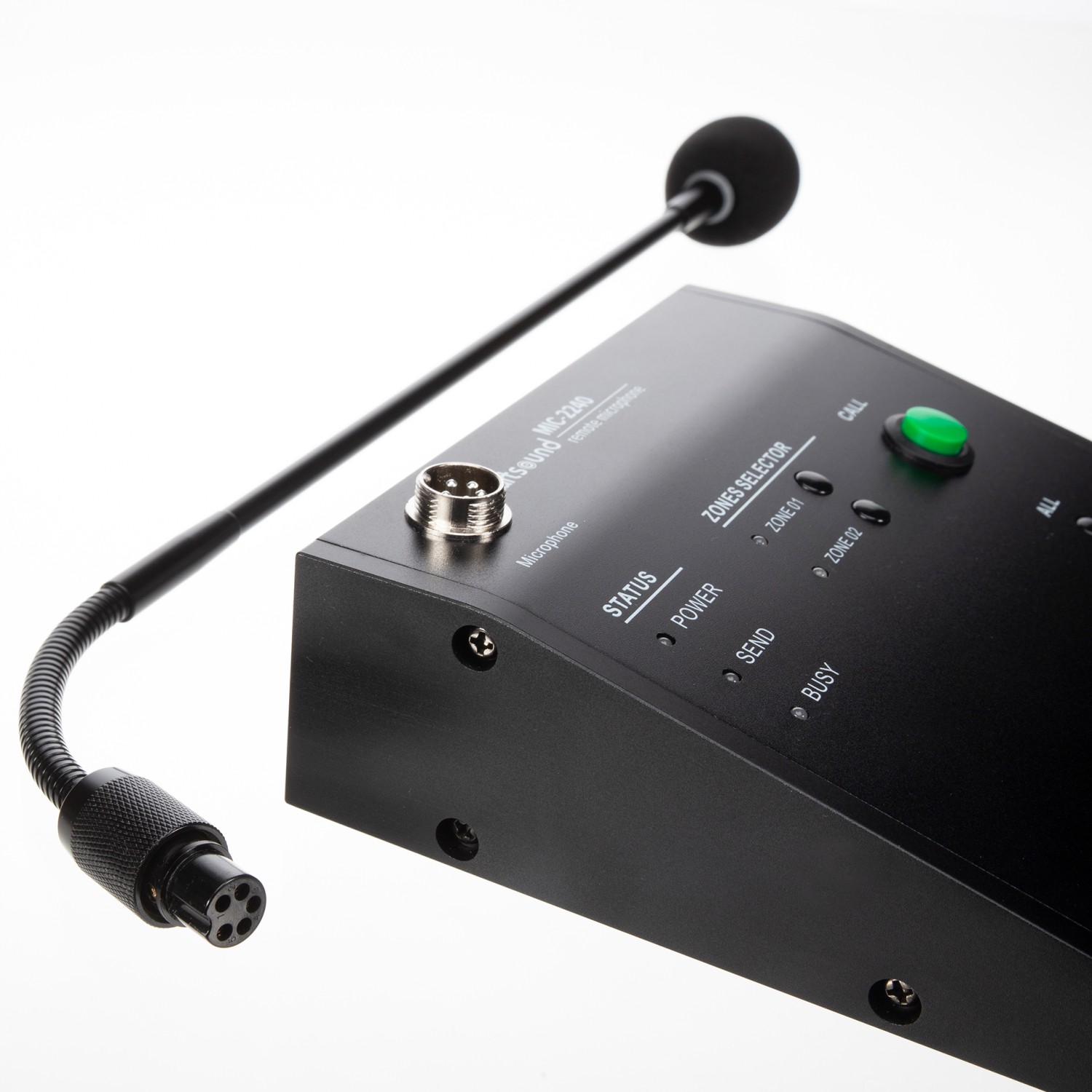 Ce microphone (à utiliser avec le MATAMP-2240) vous permet de passer un appel dans la zone que vous souhaitez. Chaque bouton de votre table « privée » a sa fonction. Vous avertissez chaque personne par le signal d'attention (gong de 2 à 4 tons), vous tirez le haut-parleur à col de cygne vers vous, vous réglez le volume et vous vous adressez à chaque spectateur. Votre indicateur LED vous dit que c'est bon. Vous connectez le MIC-2240 au MATAMP2240 via un câble réseau.